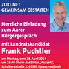 Zur Diskussion über diese Themen lädt Frank Puchtler zum Bürgergespräch