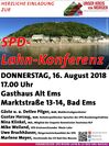 Zu einer SPD-Lahn-Konferenz kommen am Donnerstag, 16. August 2018, um 17.00 Uhr, Aktive der SPD aus den Verbandsgemeinden Bad Ems und Nassau, der Kreis-, Landes- und Bundespolitik im Gasthaus Alt Ems, Marktstraße 13-14, 56130 Bad Ems, zusammen. "Die SPD Rhein-Lahn bietet eine Plattform um über die Zukunft der Themen Bundeswasserstraße Lahn und die Ausrichtung des Tourismus zu diskutieren", erklärt SPD-Kreisvorsitzender Mike Weiland als Veranstalter gemeinsam mit Marlene Meyer, der Gemeindeverbandsvorsitzenden Bad Ems-Nassau. Auch interessierte Bürgerinnen und Bürger sind herzlich eingeladen.